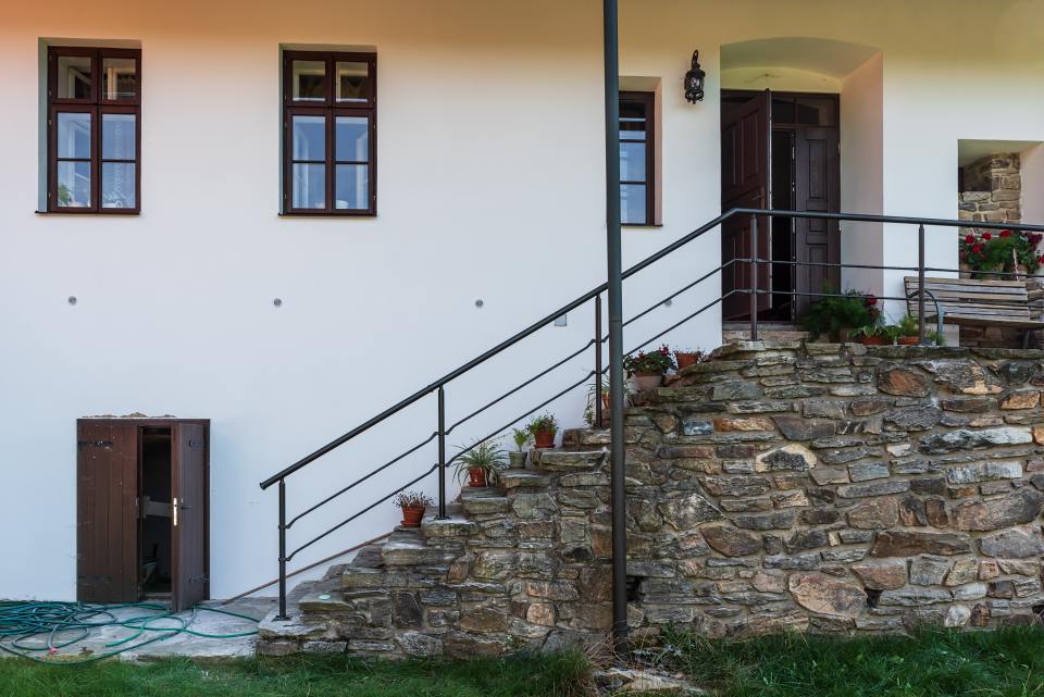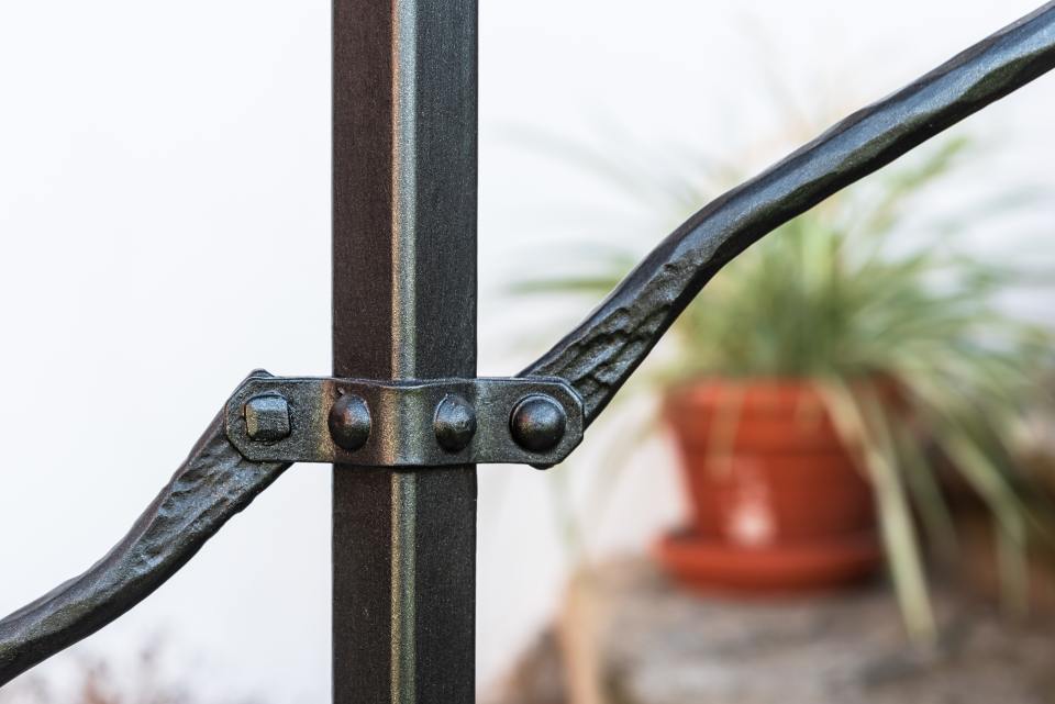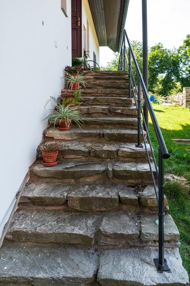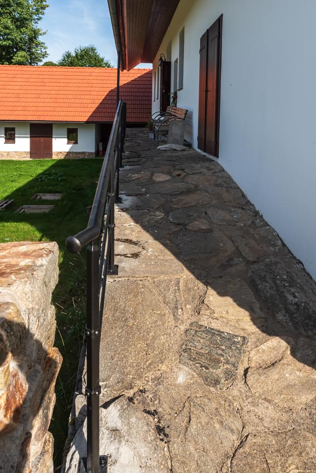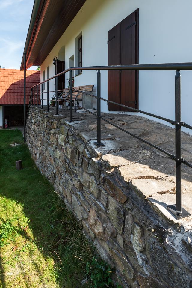 Kované zábradlí na náspí ke statku s charakterem lehkosti a elegance. Typické pro něj je jednoduchý vzor bez zbytečných kudrlinek a precizní zpracování.